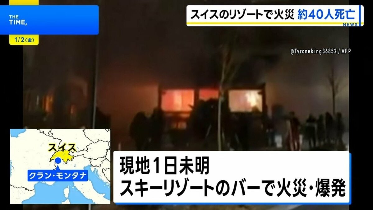スイスのスキーリゾートのバーで火災が発生、約40人が死亡、115人が負傷。火災の原因や詳細調査を期待。 ···